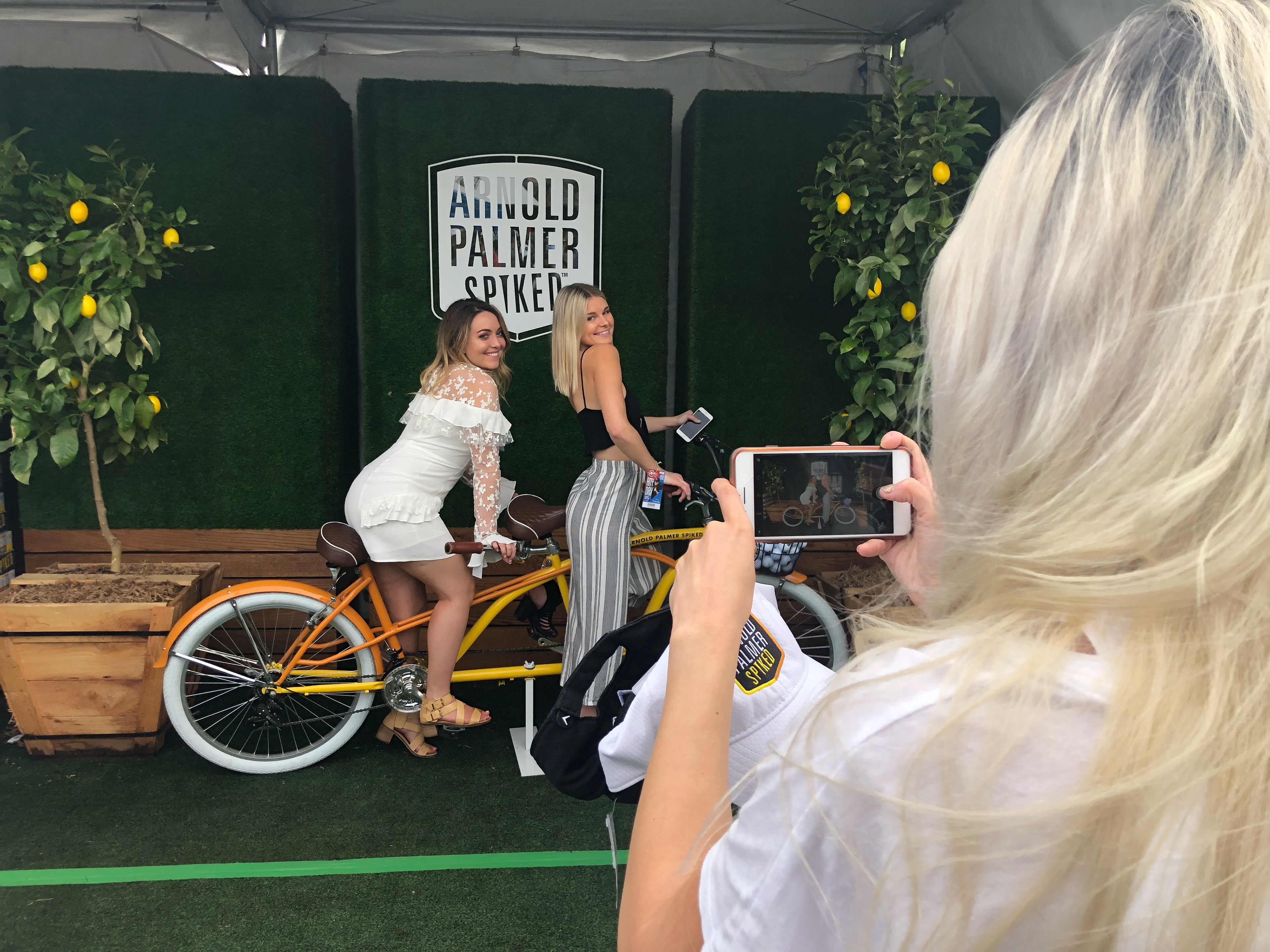 The annual Waste Management Open golf tournament is always a spectacle. Our mission was to make the Arnold Palmer Spiked booth the premiere hang out spot for golf fans. Much like the dynamic duo of tea and lemonade, we set out to create a photoshoot which complemented that perfect pairing. We landed on the idea of a tandem bike, which was in sync with the fun (and often rowdy) nature of the event.